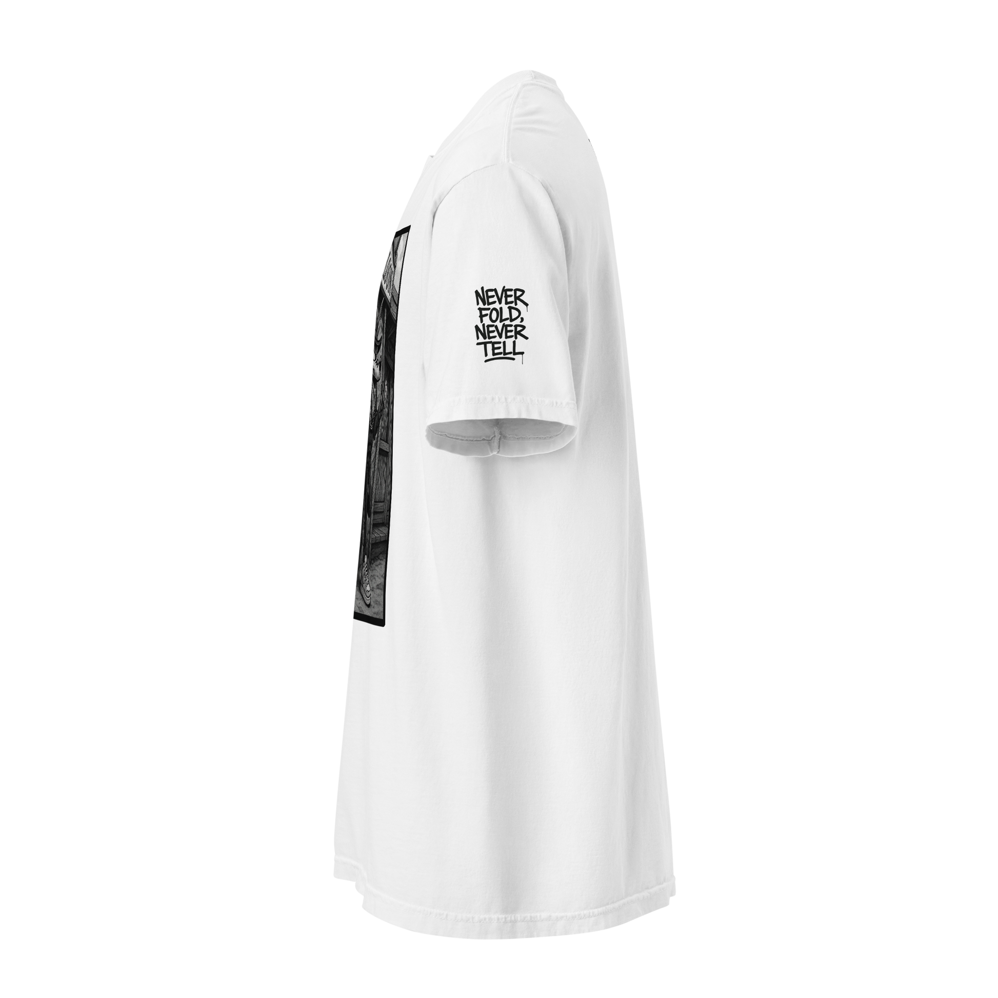 Ciężki i luźny t-shirt z bawełny premium. Oddychający materiał i mocny charakter sprawiają, że idealnie wpisuje się w różne streetwearowe outfity.
